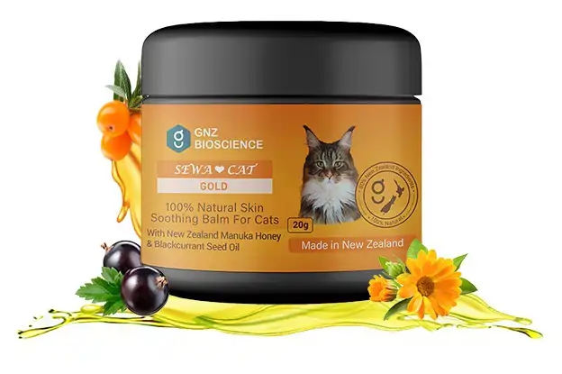 SEWA CAT GOLD is a multi-purpose, 100% natural wonder balm for your beloved cat. It has a safe and gentle ingredients with scientifically proven antibacterial, anti-inflammatory, wound healing and skin calming properties.